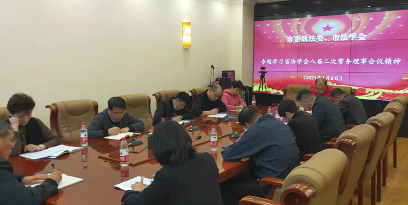 會議傳達了省委常委、政法委書記候淅珉同志、省法學會會長馬俊清在省法學會八屆二次常務理事會議上的講話精神,就貫徹習近平法治思想、加強政治建設(shè)、提升法律支撐等方面進行了研究探討,并對2021年全市法學工作進行了安排部署。