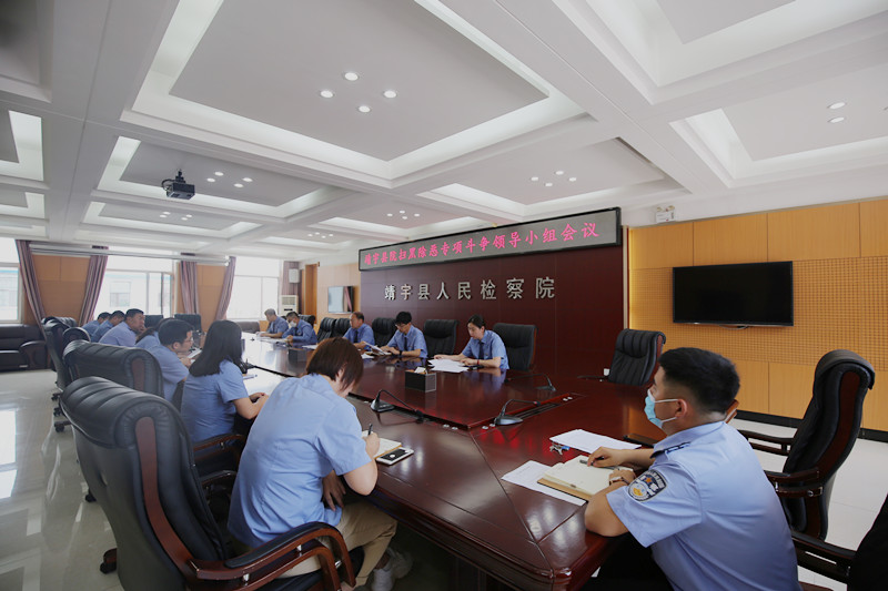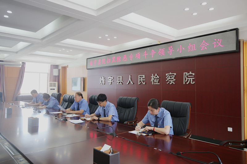 近日,靖宇縣人民檢察院召開掃黑除惡專項斗爭領導小組會議,檢委會專職委員荊紹帥主持會議,楊學武檢察長出席會議并講話,院掃黑除惡專項斗爭領導小組全體成員參加會議。