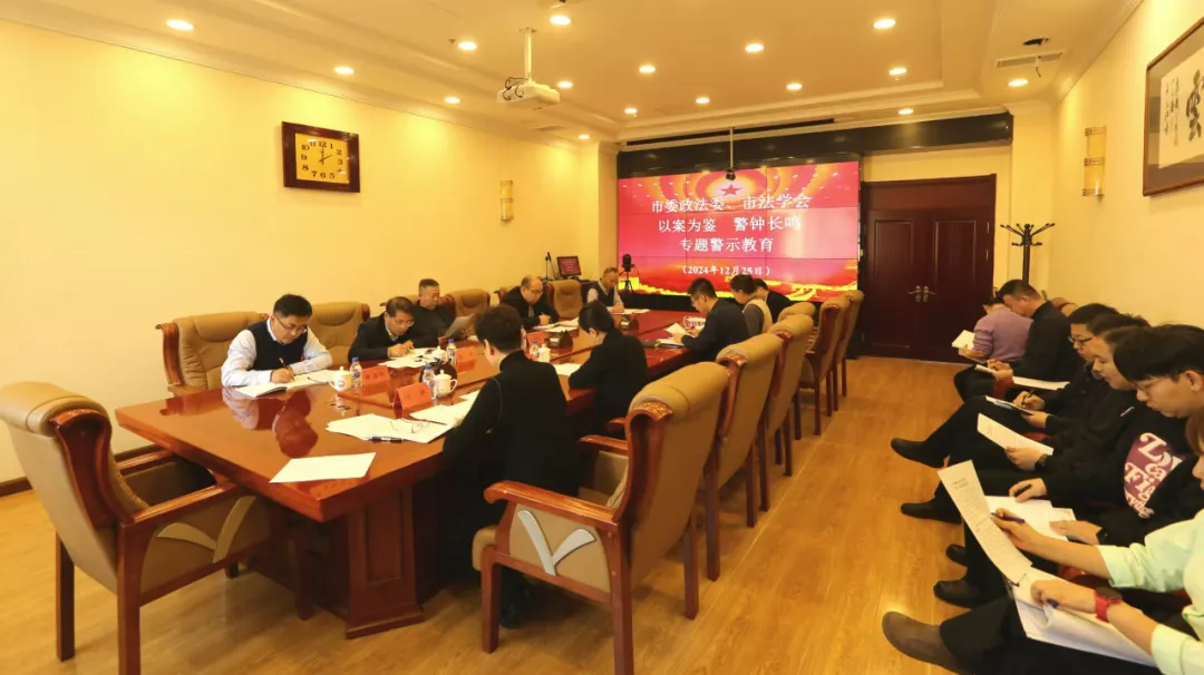 12月25日下午,白山市委政法委機關、白山市法學會以“以案為鑒、警鐘長鳴”為主題,召開專題警示教育大會。組織機關黨員干部集中學習中央政法委、省委政法委印發的典型案例和省委政法委關于加強政法隊伍紀律作風建設的通知精神以及中央政法委《關于完整準確執行防止干預司法“三個規定”的重點難點問題答復意見》,深入剖析相關典型案例,教育廣大黨員干部以案為鑒、以案促改、以案促治,持續推動市委政法委機關、市法學會紀律作風建設走深走實。