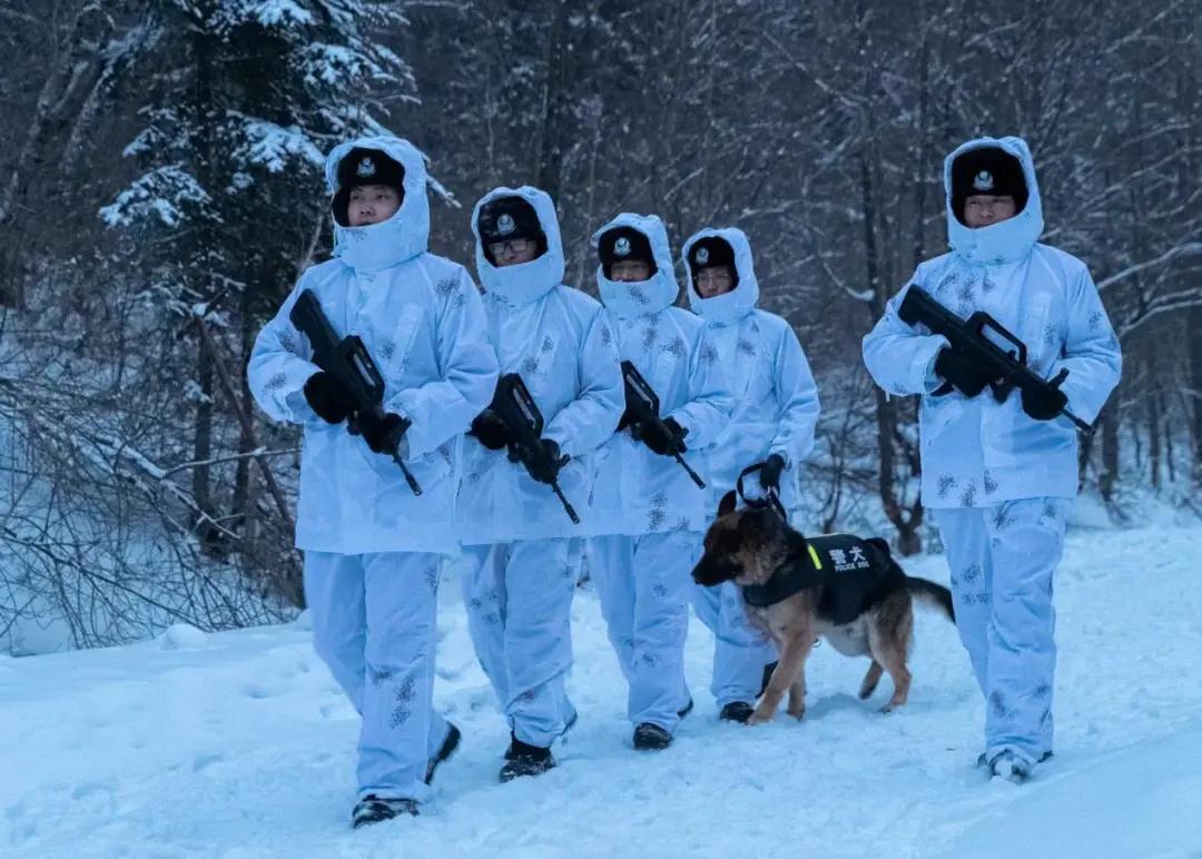 極地服、行軍包、雷鋒帽,李鵬和隊友們趟著沒過大腿的積雪,開始了一天的例行巡邏。