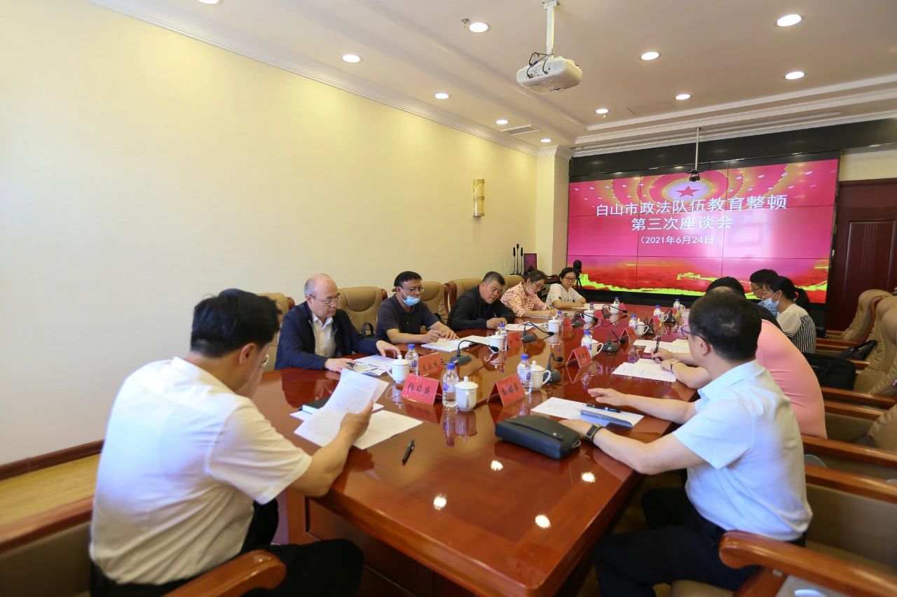 6月24日,白山市政法隊伍教育整頓第三次座談會在市委政法委會議室召開。市委常委、政法委書記、常務副市長、市政法隊伍教育整頓領導小組副組長張習慶主持會議。省第六指導組副組長左立杰,法院專班負責人朱鴻到會指導。