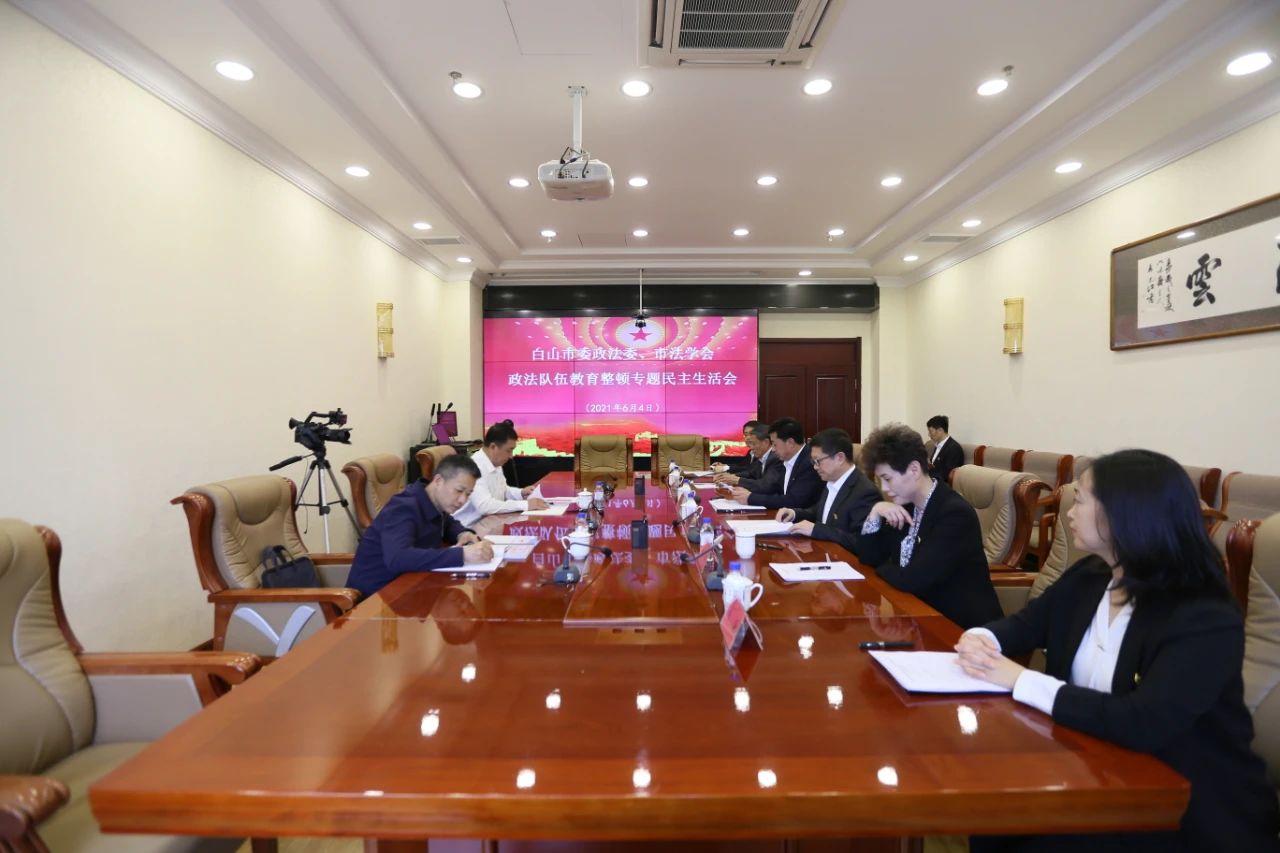 6月4日,白山市委政法委政法隊伍教育整頓專題民主生活會召開。省第六指導組副組長杜微、組員黃志濤到會指導。市委常委、常務副市長、政法委書記張習慶主持會議,市委政法委領導班子全體成員參加會議。