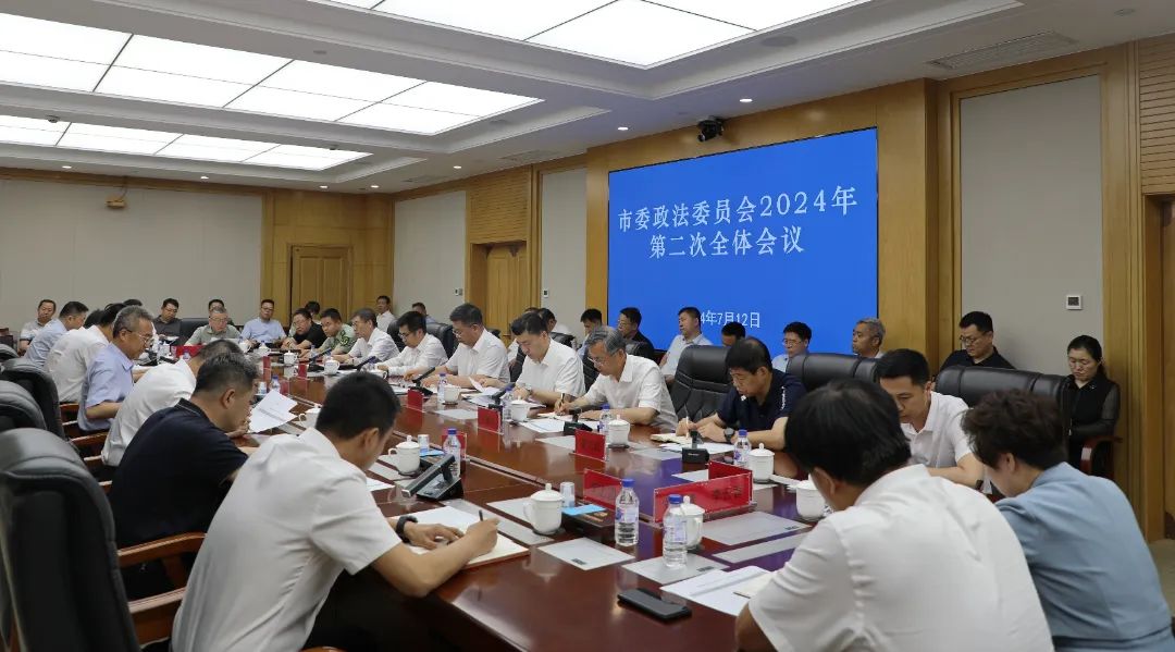 7月12日,市委政法委員會召開2024年第二次全體會議,傳達(dá)學(xué)習(xí)習(xí)近平總書記關(guān)于公安工作的重要論述和全國公安工作會議精神,聽取全市政法系統(tǒng)第一批政治督察工作情況匯報及市直政法各單位上半年工作總結(jié),審議《全市政法領(lǐng)導(dǎo)干部學(xué)習(xí)貫徹習(xí)近平法治思想防范化解重大風(fēng)險專題研討班方案(審議稿)》,研究部署近期重點(diǎn)工作。市委常委、市委政法委書記周賀主持會議并講話。