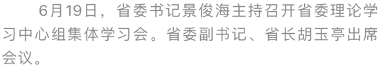 6月19日,省委書記景俊海主持召開省委理論學習中心組集體學習會,深入學習貫徹習近平總書記關于主題教育的系列重要講話和重要指示批示精神。景俊海強調,要堅持以習近平新時代中國特色社會主義思想為指引,深刻感悟黨的創新理論的真理力量和實踐偉力,切實把學習成效轉化為解決問題、推動發展的實際行動。省委副書記、省長胡玉亭出席會議。