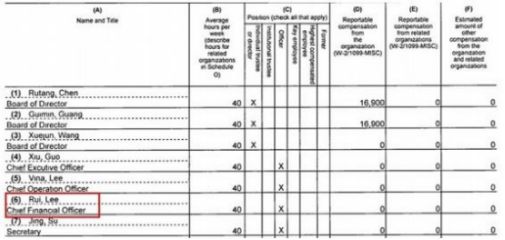 年審報告顯示,其財務總監為李洪志的妻子李瑞(Rui Lee)