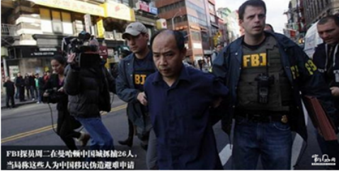 ▲美國警方拘捕偽造“法輪功”移民避難申請的人員