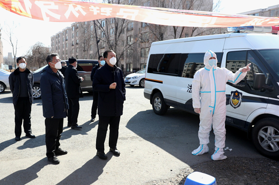 李永秋先后來到龍?zhí)秴^(qū)荒山社區(qū)卡點、昌邑區(qū)運河里小區(qū)卡點、豐滿區(qū)沿豐街道吉鋼小區(qū)執(zhí)勤點、船營區(qū)鴻博御園社區(qū),詳細察看干警人員配備、執(zhí)勤守卡、物資配送、消殺防護等工作實況,認真了解各院防控舉措、閉環(huán)管理、審判執(zhí)行、居家隔離等工作安排,殷殷叮囑一線干警既要堅決快速有效完成工作任務,又要同時增強防護意識做好個人保護。