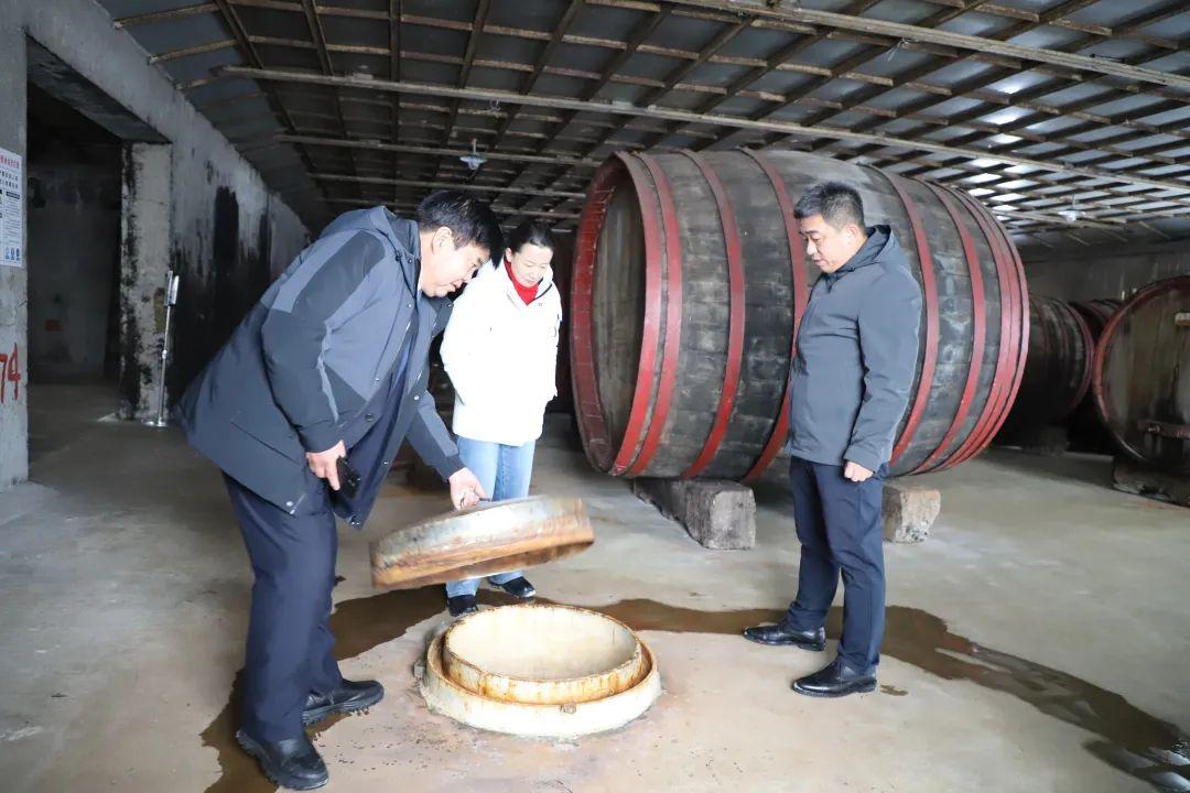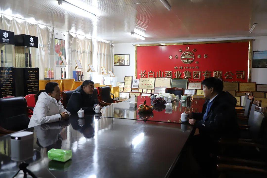 在長白山酒業集團有限公司,調研組深入釀酒車間,對酒廠歷史、窖齡、窖藏量、葡萄種植、技術研發等逐一詢問。傾聽企業在經營和發展過程中相關問題、訴求及新一年的工作規劃安排和發展思路。