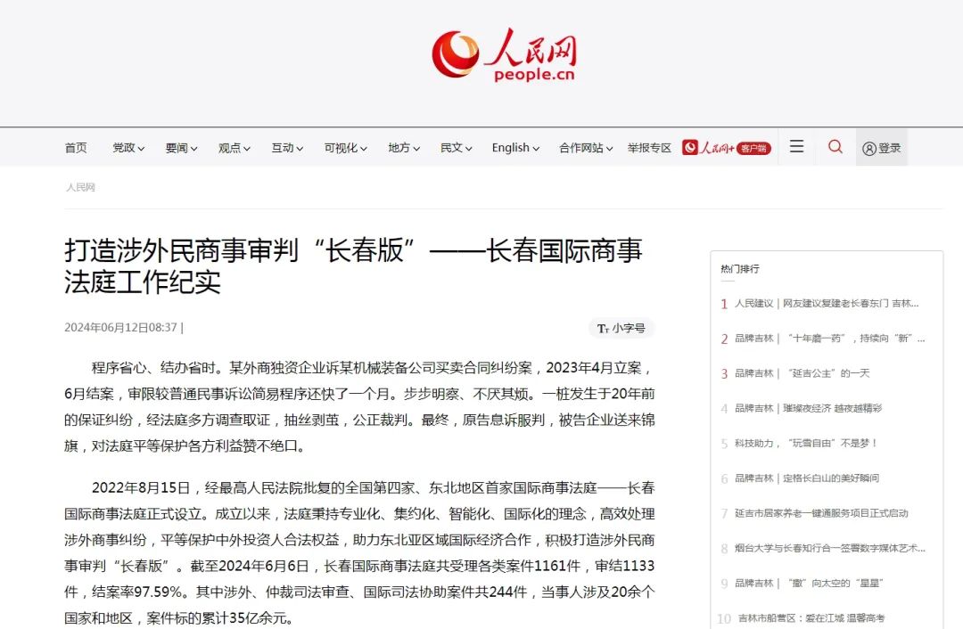 2022年8月15日,經最高人民法院批復的全國第四家、東北地區首家國際商事法庭——長春國際商事法庭正式設立。成立以來,法庭秉持專業化、集約化、智能化、國際化的理念,高效處理涉外商事糾紛,平等保護中外投資人合法權益,助力東北亞區域國際經濟合作,積極打造涉外民商事審判“長春版”。截至2024年6月6日,長春國際商事法庭共受理各類案件1161件,審結1133件,結案率97.59%。其中涉外、仲裁司法審查、國際司法協助案件共244件,當事人涉及20余個國家和地區,案件標的累計35億余元。
