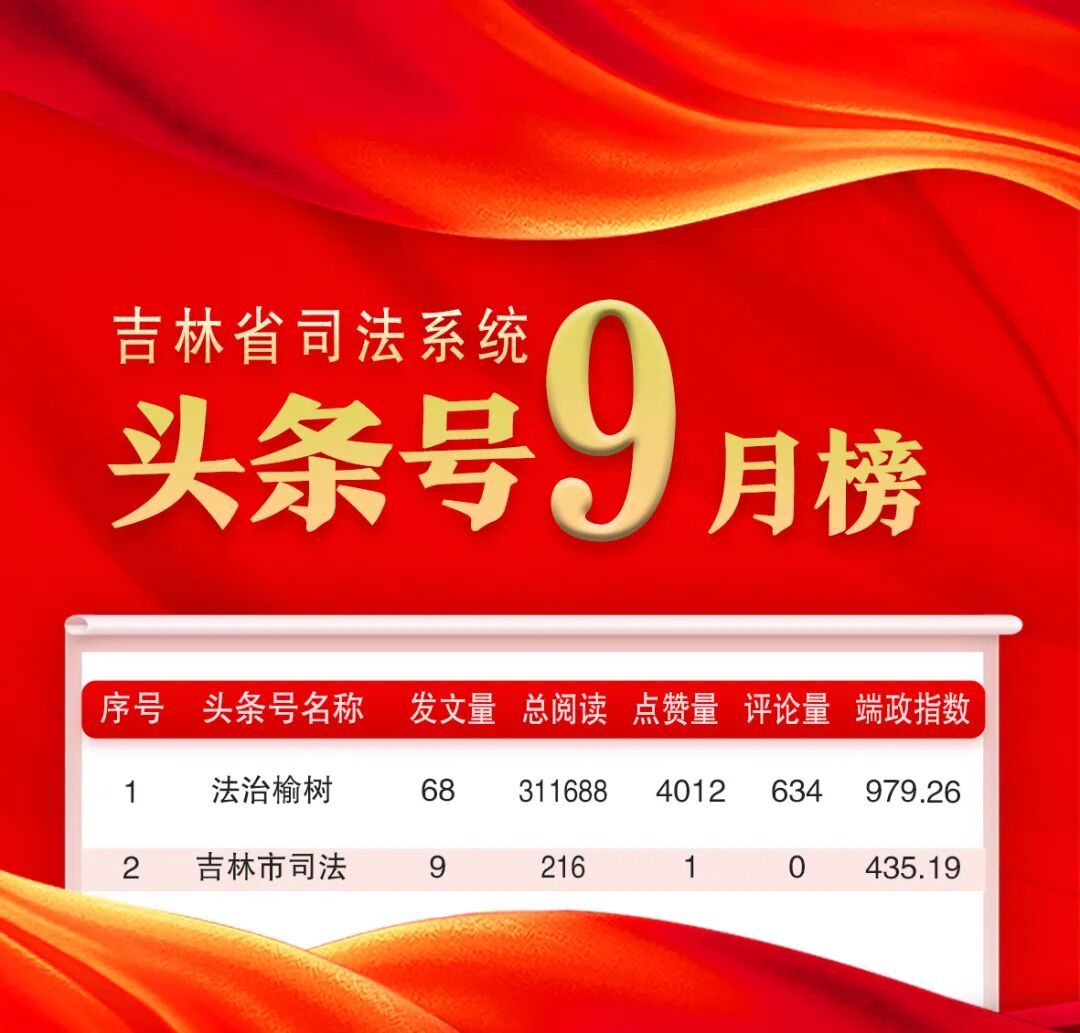 吉林省政法系統(tǒng)頭條號2025年9月排行榜已經(jīng)揭曉,“敦化市人民檢察院”獲得頭條號總榜第一名!