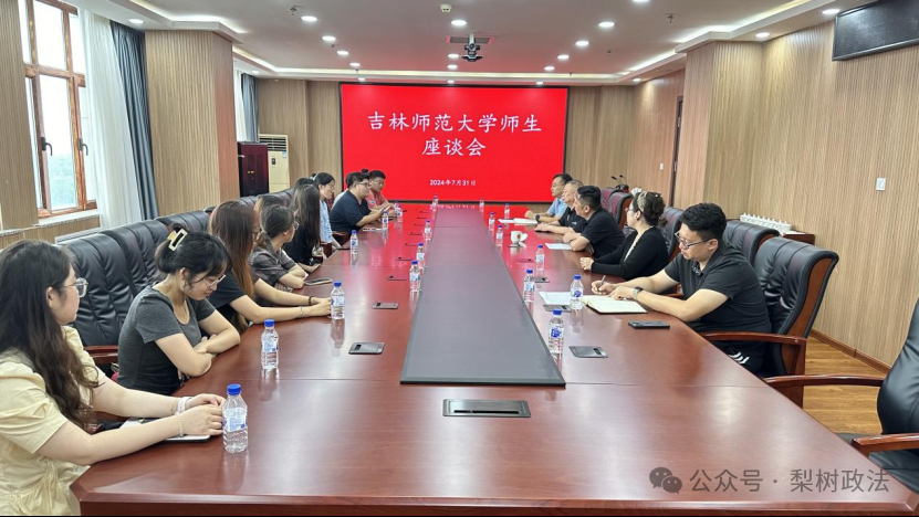 在師生座談會上,梨樹縣委常委、政法委書記杜敏與吉林師范大學師生深入交流,會上同學們積極發(fā)言,表達自己的實習心得,杜敏書記對同學們的工作進行總結(jié)和肯定,提出了對大家職業(yè)道德、實踐工作、溝通能力、業(yè)務水平等方面的囑托,表達了希望實習同學成長為優(yōu)秀的法治人才的美好祝愿。并且提出進一步合作的方針和規(guī)劃,為吉林師范大學和縣委政法委的未來合作提出了美好愿景和祝福期許。