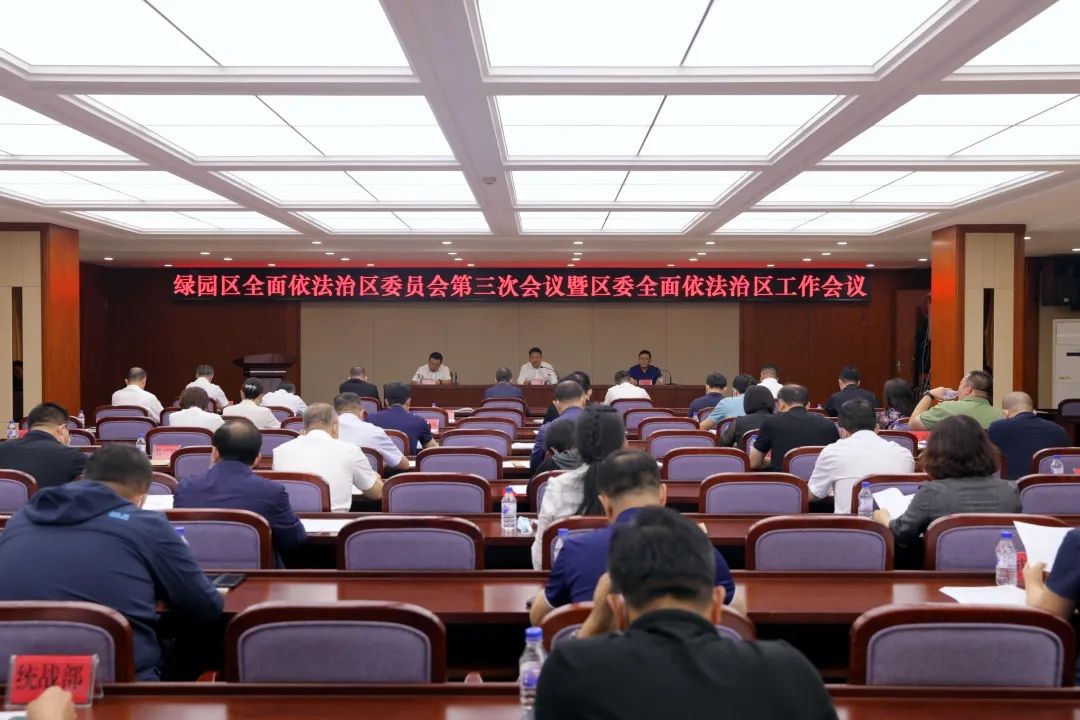 為深入學習貫徹習近平法治思想,傳達落實中央、省委和市委有關會議精神,9月8日,綠園區委副書記、區長、區委全面依法治區委員會副主任方述華主持召開了綠園區委全面依法治區委員會第三次會議暨區委全面依法治區工作會議,區委書記、區委全面依法治區委員會主任宋長者參會并講話,安排部署依法治區全年重點任務。 政法委書記、區委全面依法治區委員會辦公室主任李剛傳達了中央、省和市相關工作會議精神。會議審議通過了《關于認真學習宣傳貫徹習近平法治思想深入推進全面依法治區的實施方案》《法治綠園建設實施方案(2020-2025 年)》《綠園區法治社會建設實施方案(2020-2025 年)》《區委全面依法治區委員會 2020 年工作總結報告》《綠園區委全面依法治區委員會 2021 年工作要點》等重要文件。市場監督管理局綠園分局、綠園區法院和綠園區檢察院作書面經驗交流。