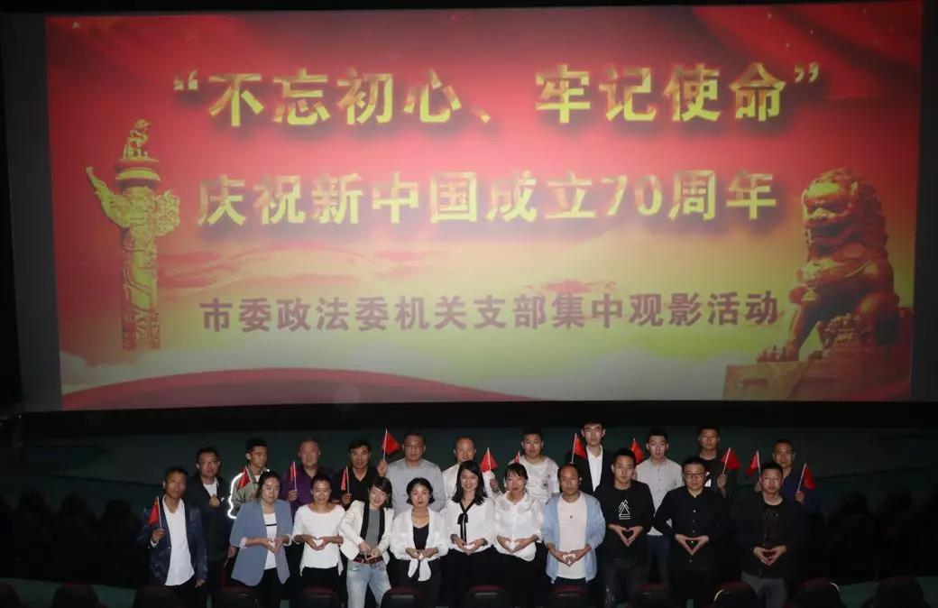 為慶祝新中國成立70周年,結合開展“不忘初心、牢記使命”主題教育,9月30日,市委政法委黨支部開展集中觀影活動,觀看電影《我和我的祖國》。