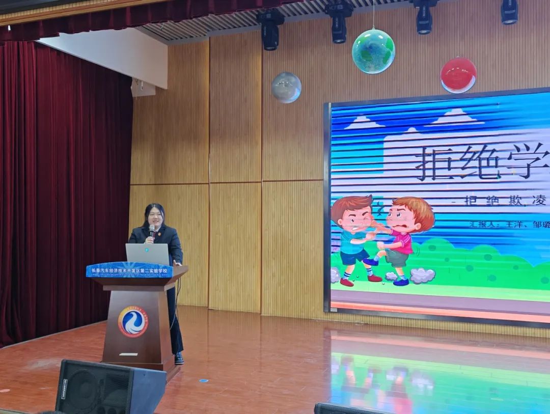 為進一步增強青少年的法治觀念,預防和杜絕“校園欺凌”事件發(fā)生,積極營造安全、和諧、友愛的校園環(huán)境,近日,長春汽開區(qū)法院法官干警走進汽開區(qū)第二實驗學校,為同學們帶來了一場以“拒絕欺凌 與法同行”為主題的普法宣講。