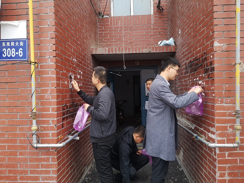 為了讓小區居民有一個干凈的居住環境,10月10日,雙陽區政法委機關干部到城中小學家屬樓,清理墻體小廣告,經過一個多小時的清理,小區樓道與門口外墻體,都重新變得干凈如新,得到了小區居民的好評。
