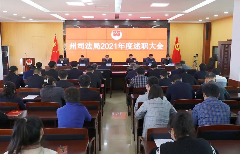 為回顧總結2021年延邊州司法局各項工作開展情況,分析研判當前遇到的困難和形勢,著手部署2022年各項工作任務,1月4日,延邊州司法局召開2021年度述職大會。局黨組書記、局長馮建平出席會議并講話,局黨組成員、副局長尹京哲主持會議。