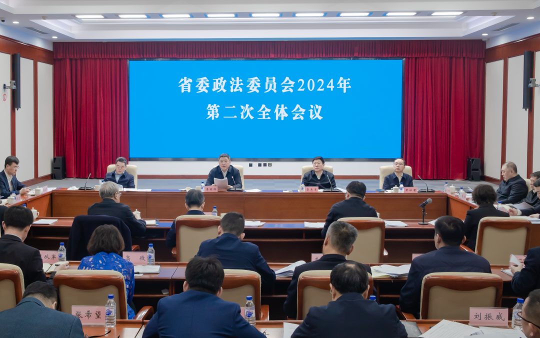 3月22日,省委政法委員會召開2024年度第二次全體會議,傳達學習近期習近平總書記重要講話重要指示批示精神和中央政法委、省委重要部署要求,審議有關文件,研究謀劃壓實維護社會穩定責任制、推進綜治中心規范化建設達標年活動、開展政治督察、政法機關優化法治化營商環境服務保障民營經濟發展壯大等工作思路和舉措。省委常委、省委政法委書記李明偉主持并講話。